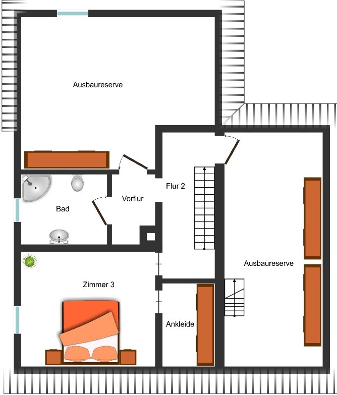 - Dachgeschoss rechte Seite und Teilausbau linke Seite (schon gedämmt)