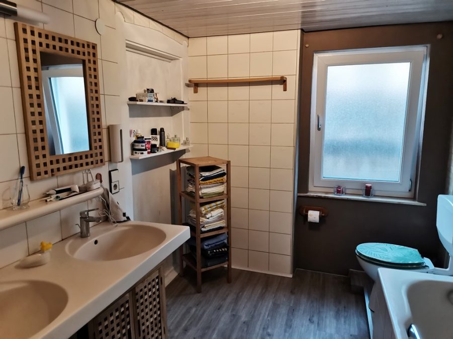 - helles Tageslichtbad mit Wanne, Dusche, 2 Waschtischen sowie WC im 1. OG