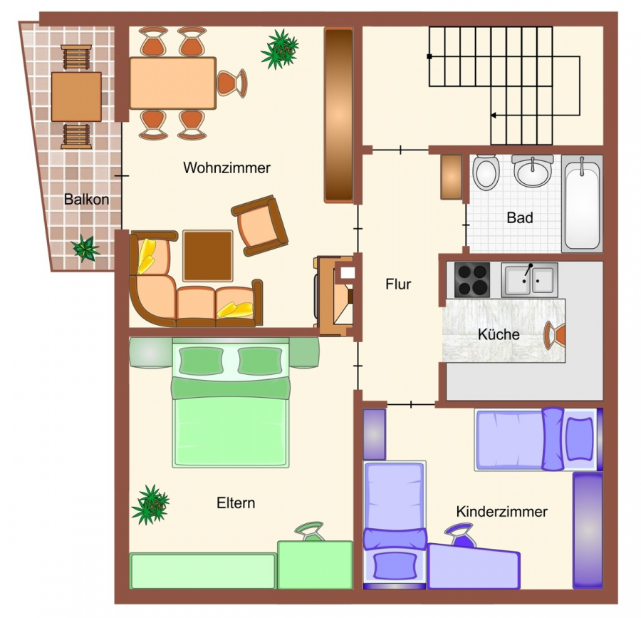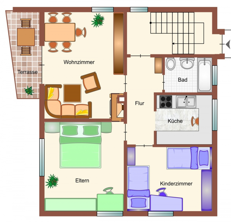 - ca. 5 min. in das Zentrum und den Geschäften des täglichen Bedarfs