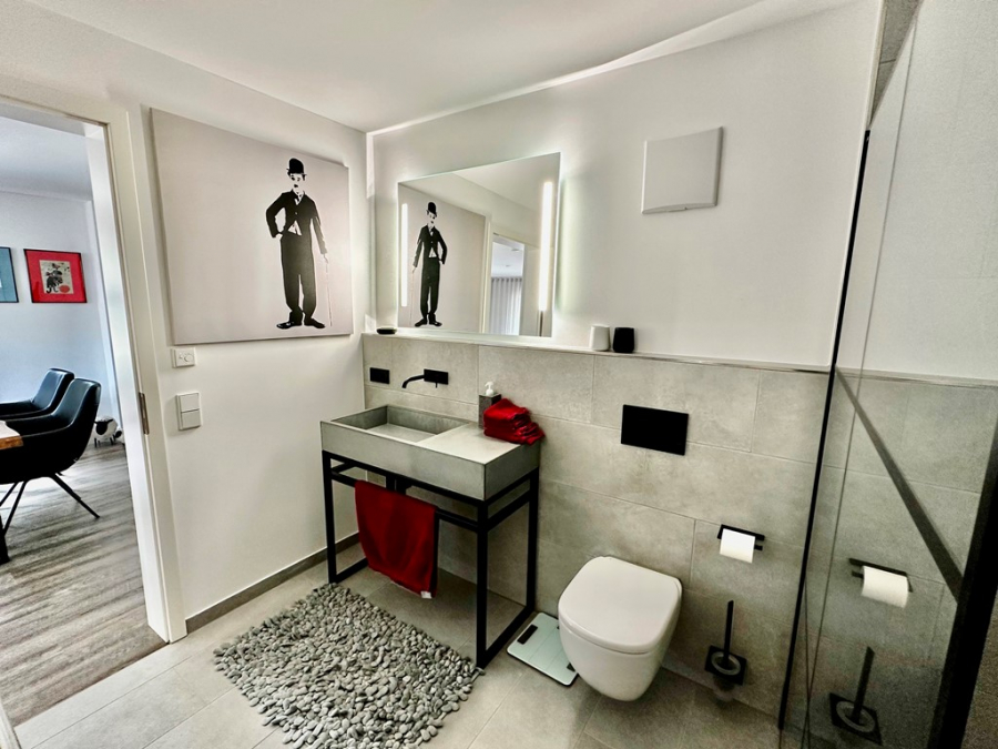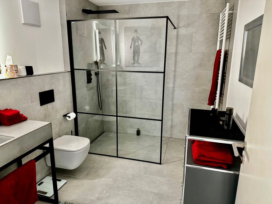 - Badezimmer mit großzügiger ebenerdiger Dusche